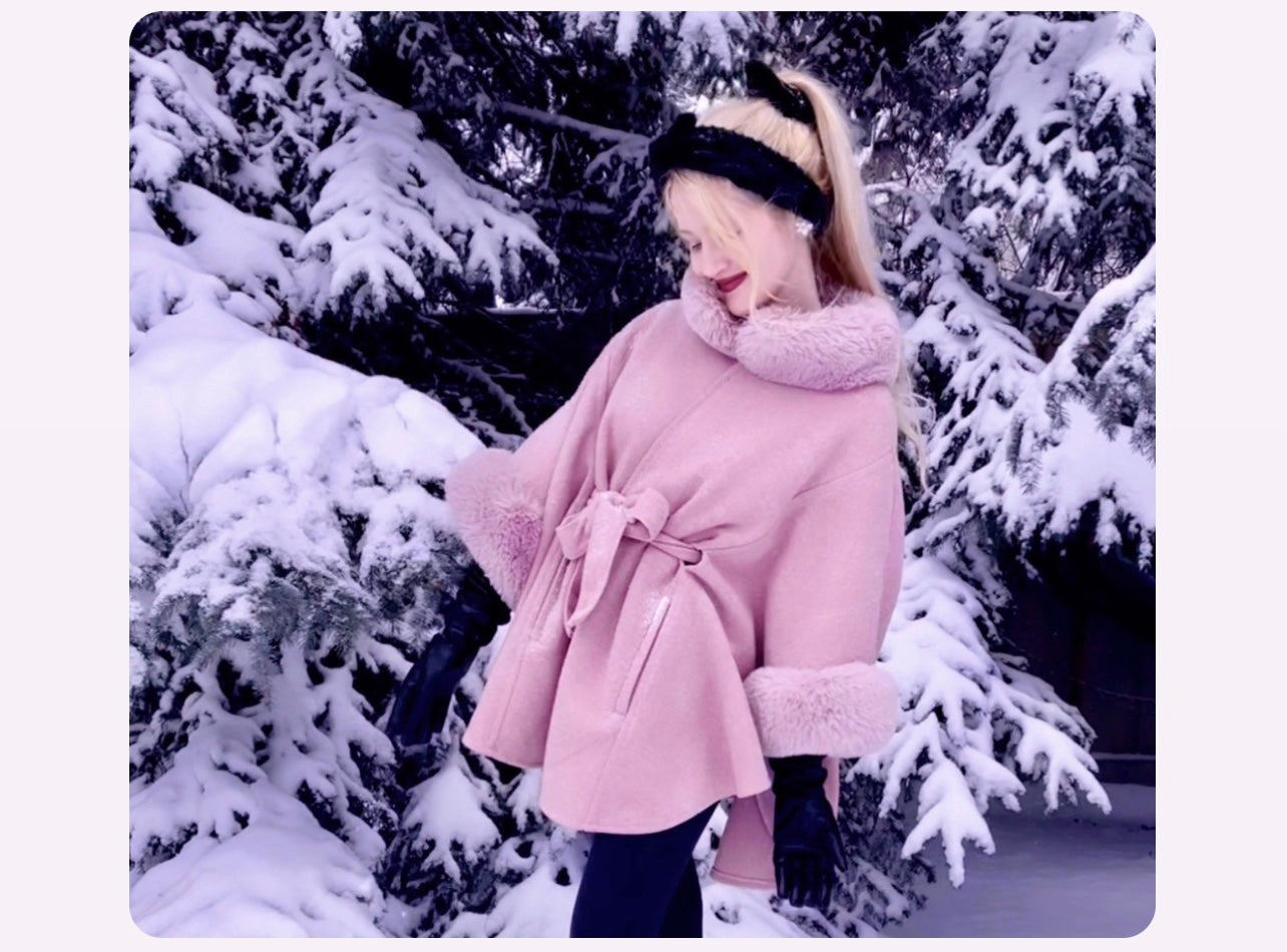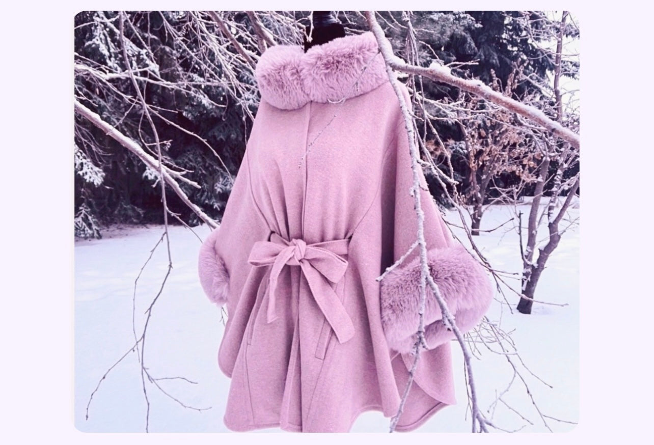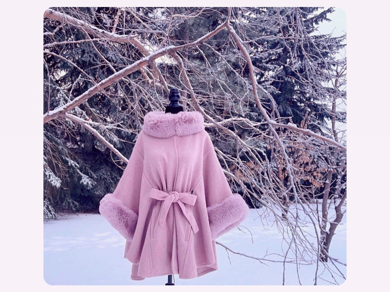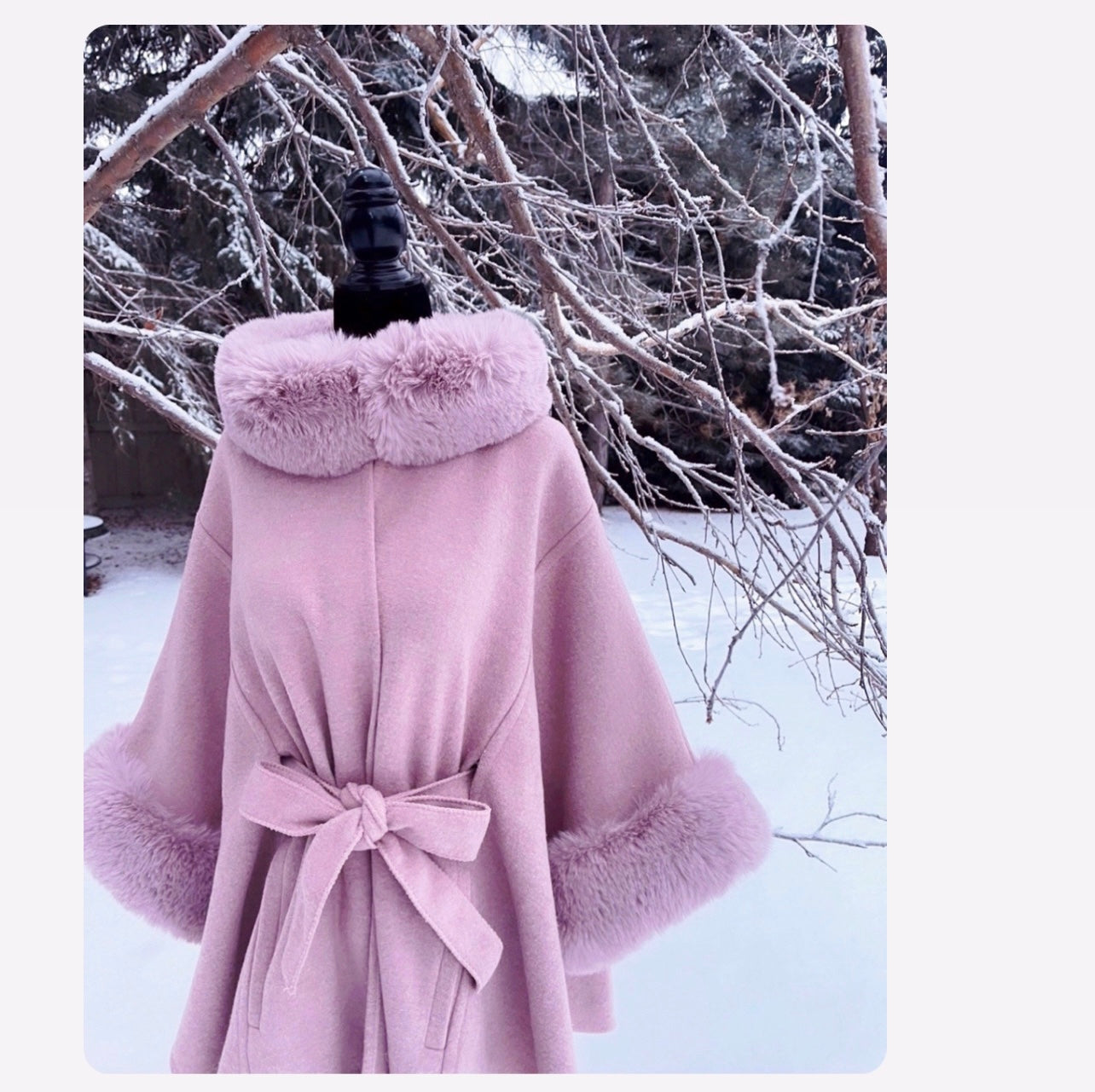 Fluffy Faux Fur Cape Coat. Made with the finest, fluffiest, faux fur - no shaggy dog looking faux fur (not that we don’t love our doggos!) Wool Blend ❤︎ Complimentary ❤︎ Glass Pearl brooch Closure & Cable Knit Elbow Length Gloves with...Read more