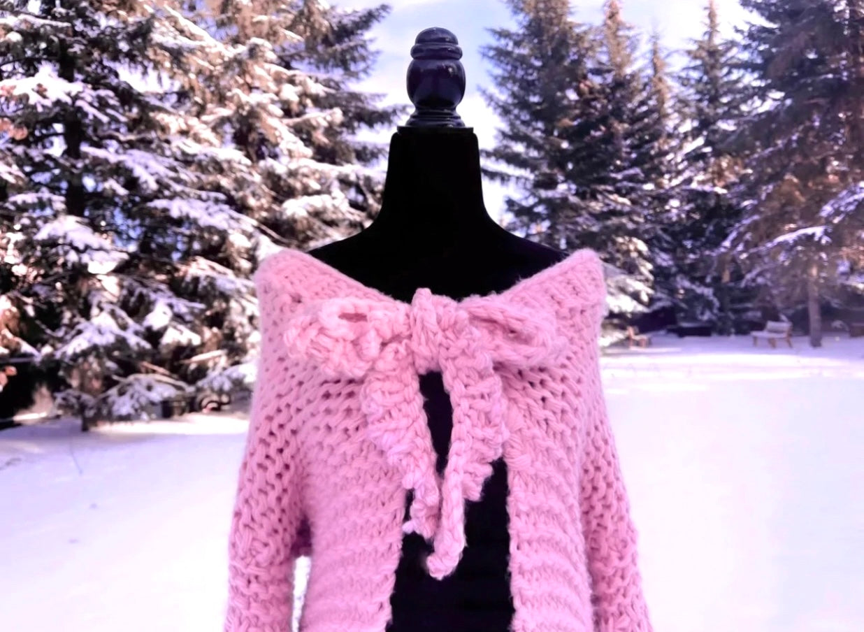 100% Hand Knit Oversized Ultra Chunky Knit Sweater Our Super Chunky Yarn helps create our Super Cozy Sweaters Tie up bow detail One size fits all, comfortably up to 43 inch bust Assembled in Canada with Imported Parts Acrylic &...Read more
